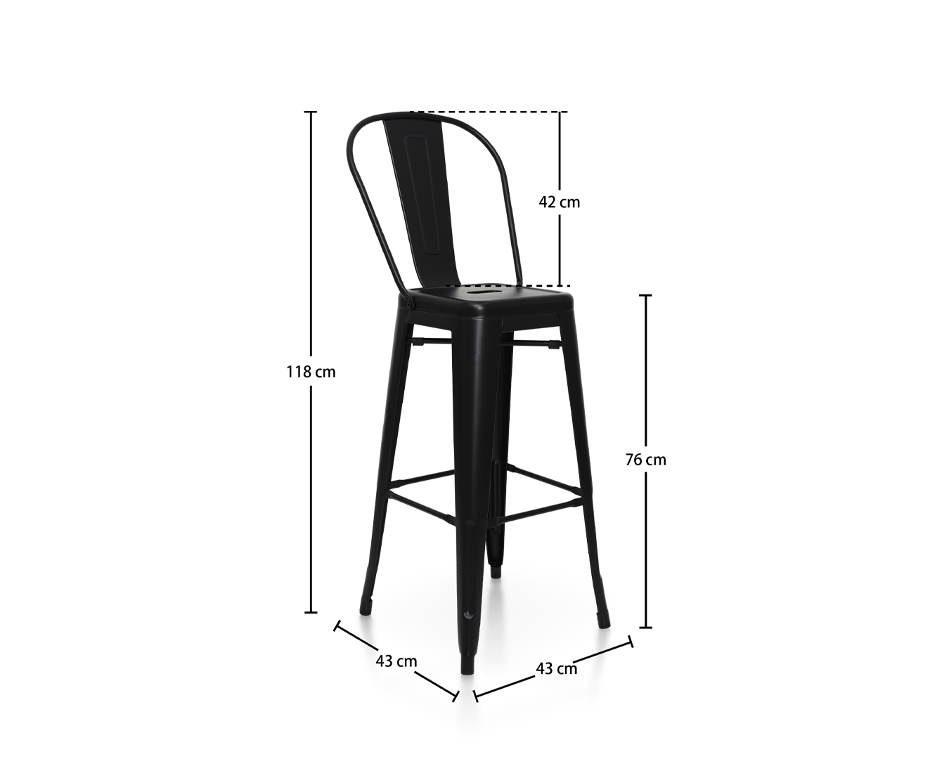 بيت / منتجات / كرسي التصميم / البارستول الأسود المعدني مع مسند الظهر