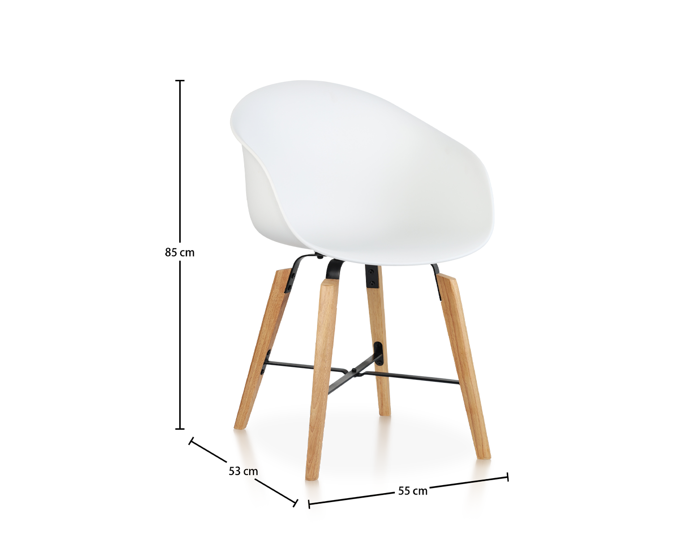 • مصنوع من البولي بروبيلين مقولبة ، مقعد متين وسهل التنظيف. تضيف أرجل الخشب المطاطية وموصلات الحديد المغلفة بالمسحوق الأسود الدفء والتناقض مع المظهر الأبيض بالكامل.