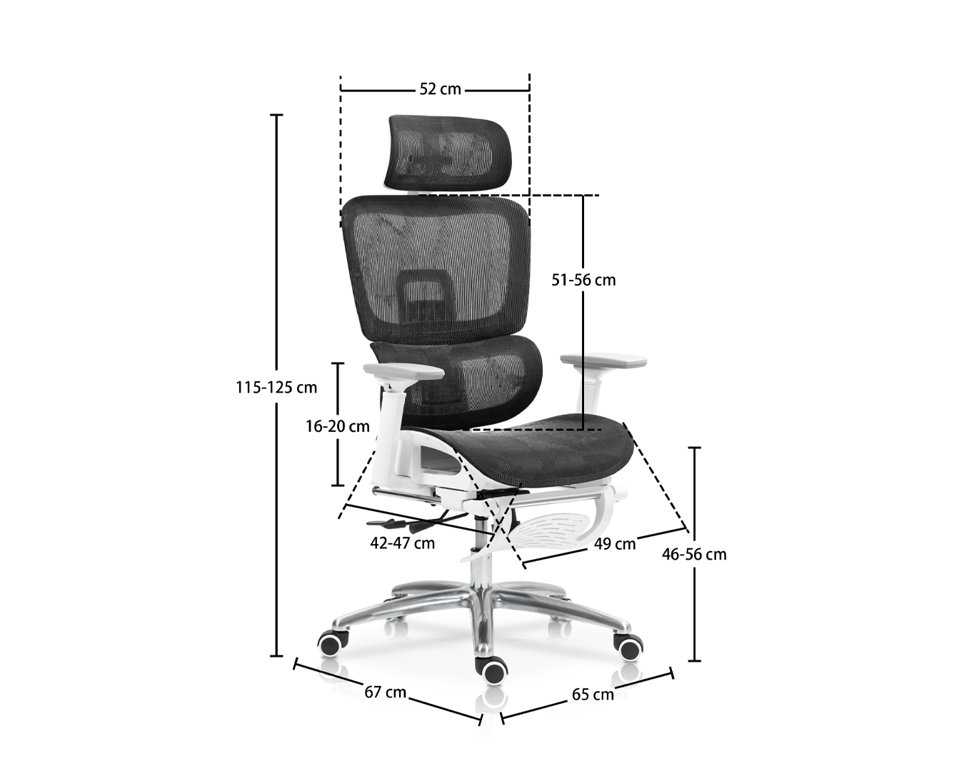-الحجم: W65*D67*H115-125cm / sh: 46-56 cm