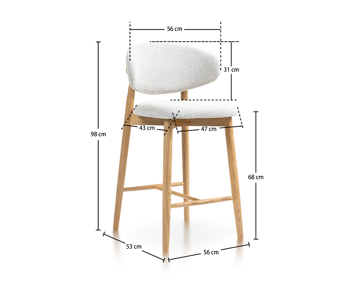 • مصنوع من خشب الرماد المتين ومصمم للاقتران بشكل مثالي مع عدادات البار أو جزر المطبخ. يضمن الإطار القوي والمقعد المريح دعمًا طويل الأمد ، في حين أن التصميم الأنيق يجعلها مناسبة جدًا للديكورات الداخلية المعاصرة أو الريفية.